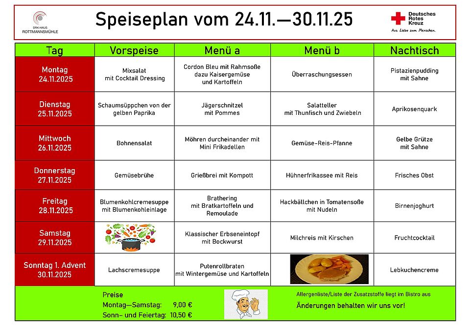 Die Bewohner/innen haben die Möglichkeit ihre Wünsche zu äußern und zusammen mit dem Bewohnerbeirat Einfluss an der Gestaltung der Speisepläne zu nehmen. So trifft die Beachtung einer ausgewogenen und gesunden, angepassten Ernährung und die individuellen Bedürfnisse und Wünsche der Bewohner/innen zusammen. Unter Wahrung des Selbstbestimmungsrechts, der Ernährungsgewohnheiten und auch den kulturellen und religiösen Überzeugungen unserer Bewohner/innen tragen wir so zur Steigerung des Wohlbefindens bei.