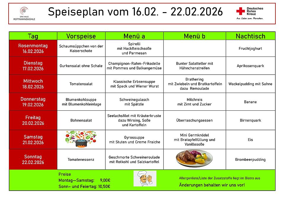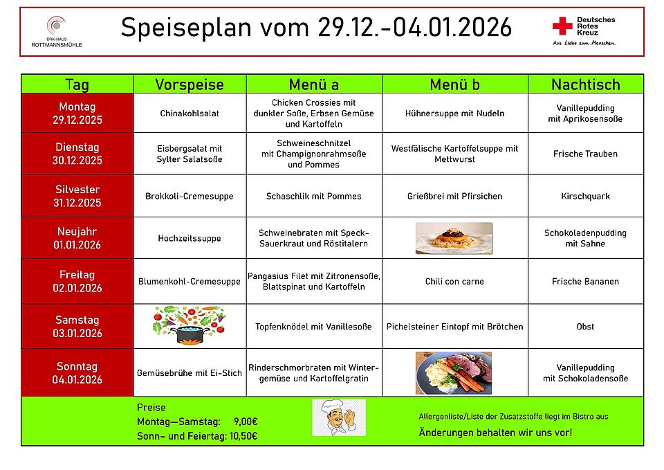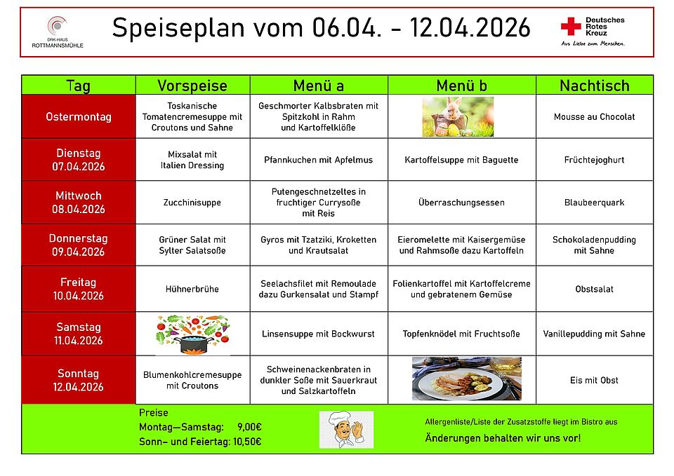 Möchten Sie Sonn-und/oder Feiertags bei uns essen? Dann bitten wir um vorherige Anmeldung unter